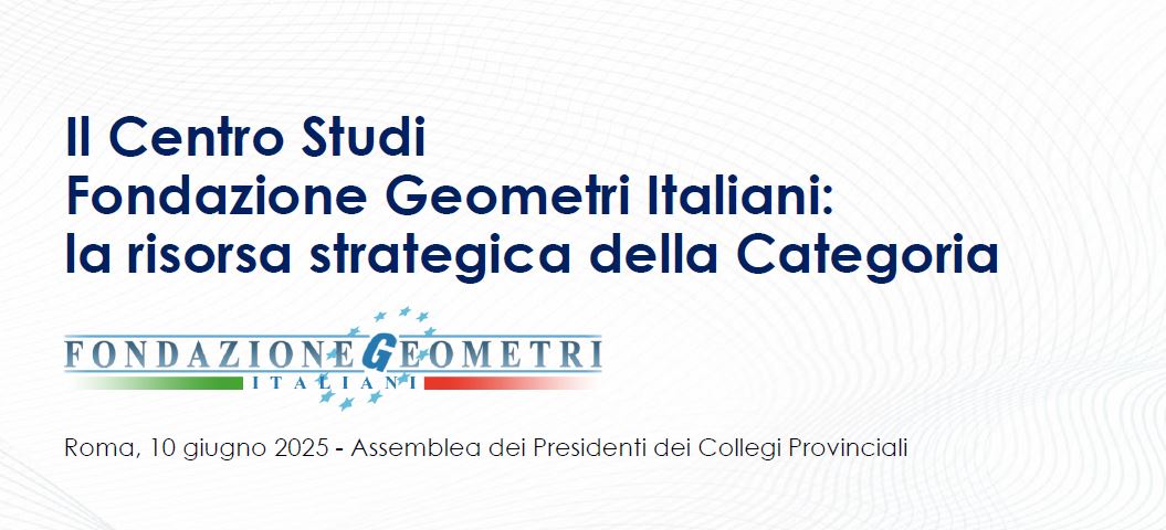 Il Consiglio Nazionale Geometri e Geometri Laureati e la Cassa Geometri, per il tramite della Fondazione Geometri Italiani, hanno annunciato l’istituzione di un Centro Studi indipendente.