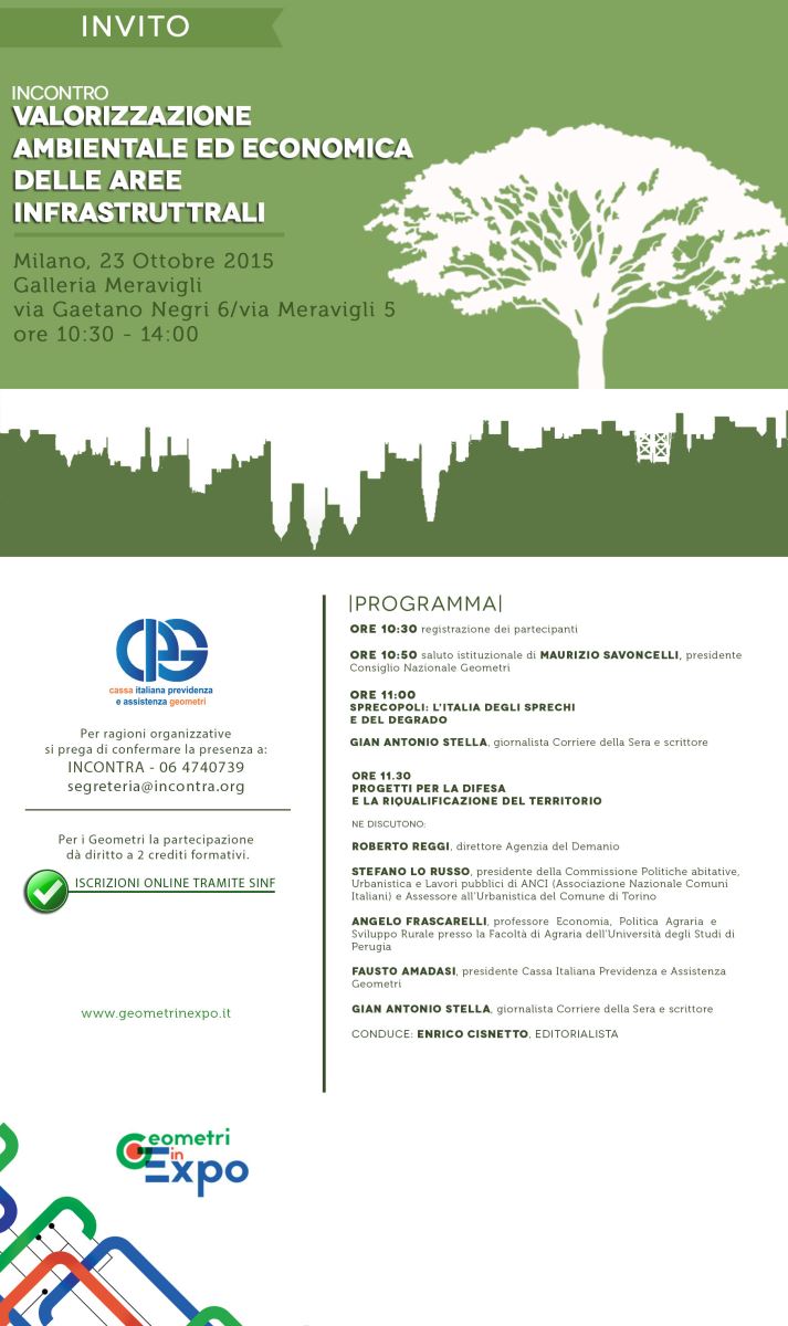 E’ promosso da CIPAG, Cassa Italiana Previdenza e Assistenza Geometri, l’incontro sulla valorizzazione ambientale ed economica delle aree infrastrutturali