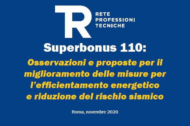 Fra l’entusiasmo iniziale degli esponenti della filiera delle costruzioni e le molteplici aspettative dei proprietari immobiliari, il Superbonus 110% ha subito assunto un andamento altalenante per la complessità della misura, le difficoltà interpretative della regolamentazione e la generale confusione ingenerata dagli interventi delle diverse realtà coinvolte a vario titolo. A corredo del necessario dialogo prontamente avviato con le istituzioni, la Rete Professioni Tecniche interviene nuovamente nell’intento di perfezionare e semplificare la normativa, predisponendo un documento che recupera e sintetizza le innumerevoli segnalazioni pervenute ai Consigli nazionali degli Ordini e dei Collegi professionali che fanno capo a RPT. Nell’elaborazione del testo sono stati individuati i principali aspetti critici e proposte soluzioni correttive sostenibili oltre che immediatamente attuabili. Il titolo è “Osservazioni e proposte per il miglioramento delle misure per l’efficientamento energetico e riduzione del rischio sismico”.