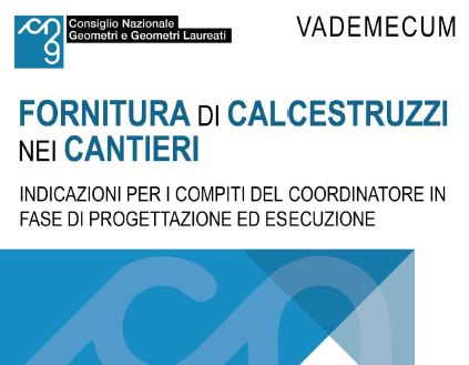 È a disposizione degli Iscritti il vademecum “Indicazioni relative ai compiti del coordinatore in fase di progettazione ed esecuzione per le attività di mera fornitura di calcestruzzo nei cantieri che non dispongono di un’area di scarico interna”, elaborato a cura della Commissione Nazionale Sicurezza CNGeGL e frutto dell’esperienza concreta di chi da anni opera nei cantieri, al fianco dei geometri coordinatori